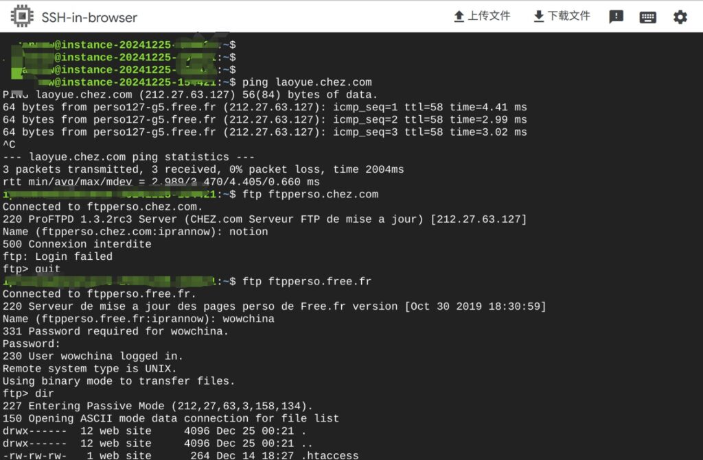 chez.com空间管理不容易 x | 2024-12-27 2:22 | 5,218 | 随笔 79 字 | 1 分钟内 开了GCP 300美元的试用 顺手开了3个实例位于欧洲 法国 巴黎 三区A B C 实测都不能FTP管理chez.com空间 有可以ftp管理chez的住宅IP 或者webftp 记得call我: 4266699@gmail.com